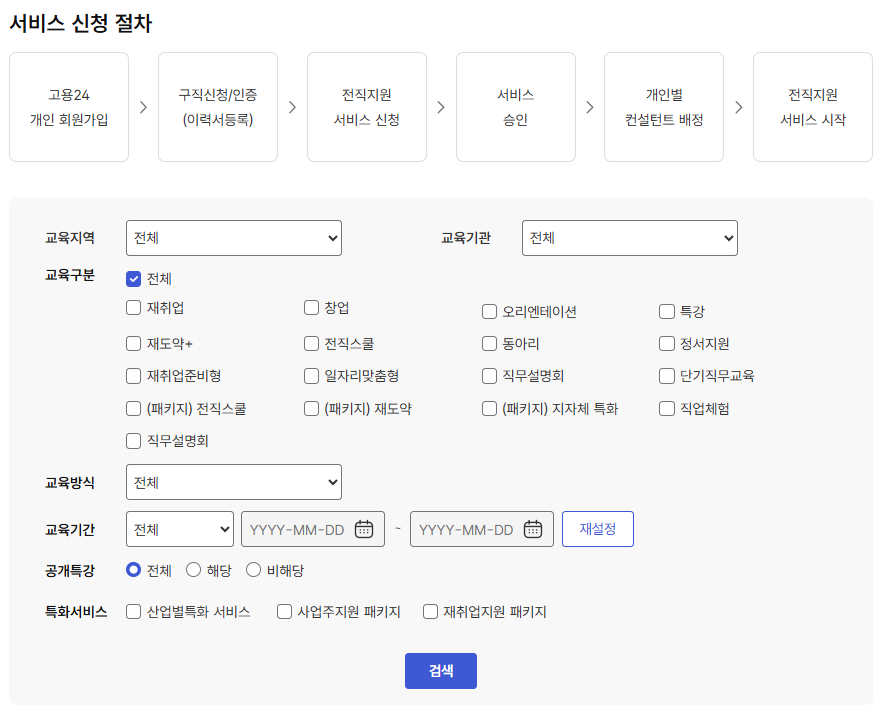 교육 서비스 신청 | 중장년내일센터 | 취업역량강화 | 취업지원