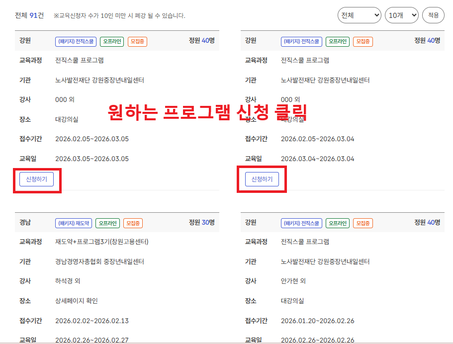 중장년내일센터 교육 신청 방법