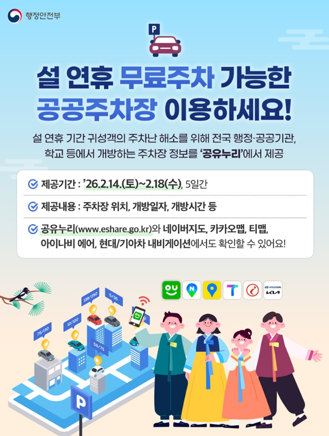 올해 설 연휴 무료주차 정보를 미리 확인하고, 불필요한 주차요금 부담 없이 편안한 명절 보내시길 바랍니다.