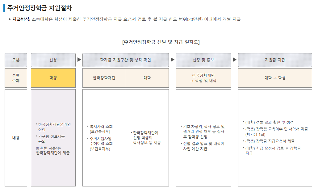 주거안정장학금은 대학 소재지와 부모 거주지가 멀어 독립 거주가 필요한 학생에게 주거비를 지원하는 국가 장학사업입니다. 해당 사업은 한국장학재단에서 운영하고 있습니다.